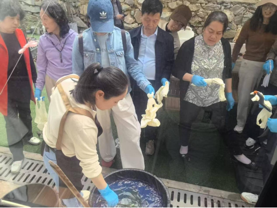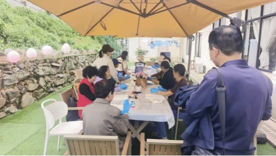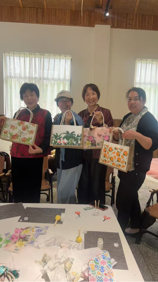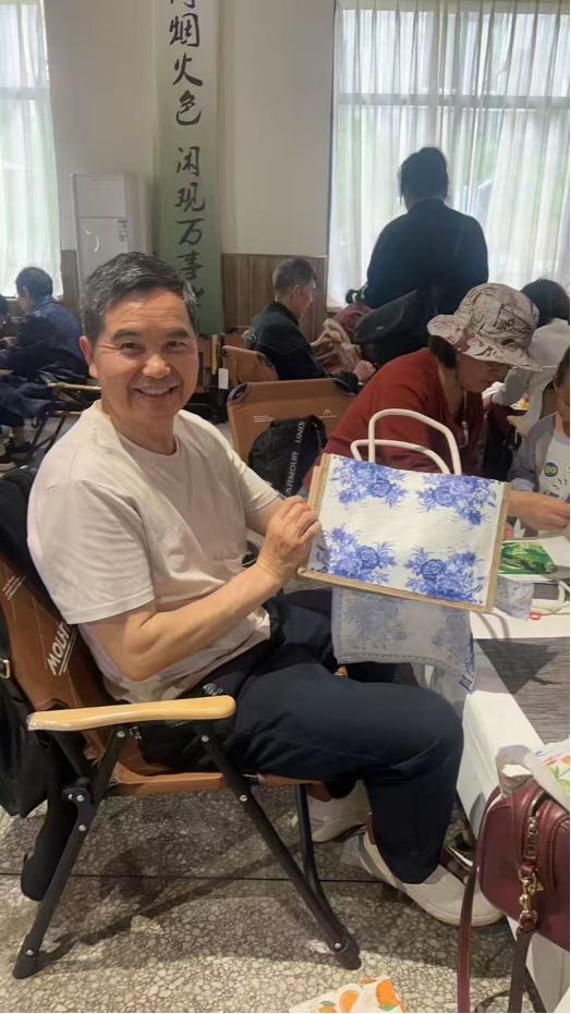 抵达青天寨后,老同志们漫步山间,欣赏春日自然风光,在鸟语花香中舒缓心情、畅谈往昔。活动期间,党委理论学习中心组集体学习、党支部书记工作例会在指定会议室顺利召开,实现了“春游+学习+工作”全面兼顾。下午的非遗蓝染、托特手工包制作体验环节备受欢迎,在专业老师指导下,老同志们动手创作、兴致盎然,一件件独具特色的手工作品满载乐趣与成就感。